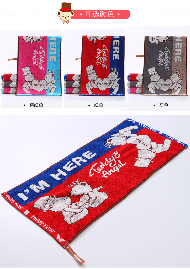 Jieliya child towel cute teddy bear cartoon little towel baby facial cleaning face towel children's towel 6762 green 1 piece 25 * 50cm