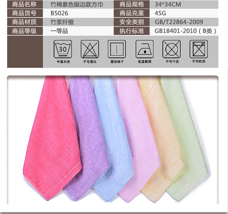 [6 packs] bamboo 100 bamboo fiber square towel softcomfort table skin friendly water absorption child bamboo charcoal Bibs 6 packs 34 * 34cm