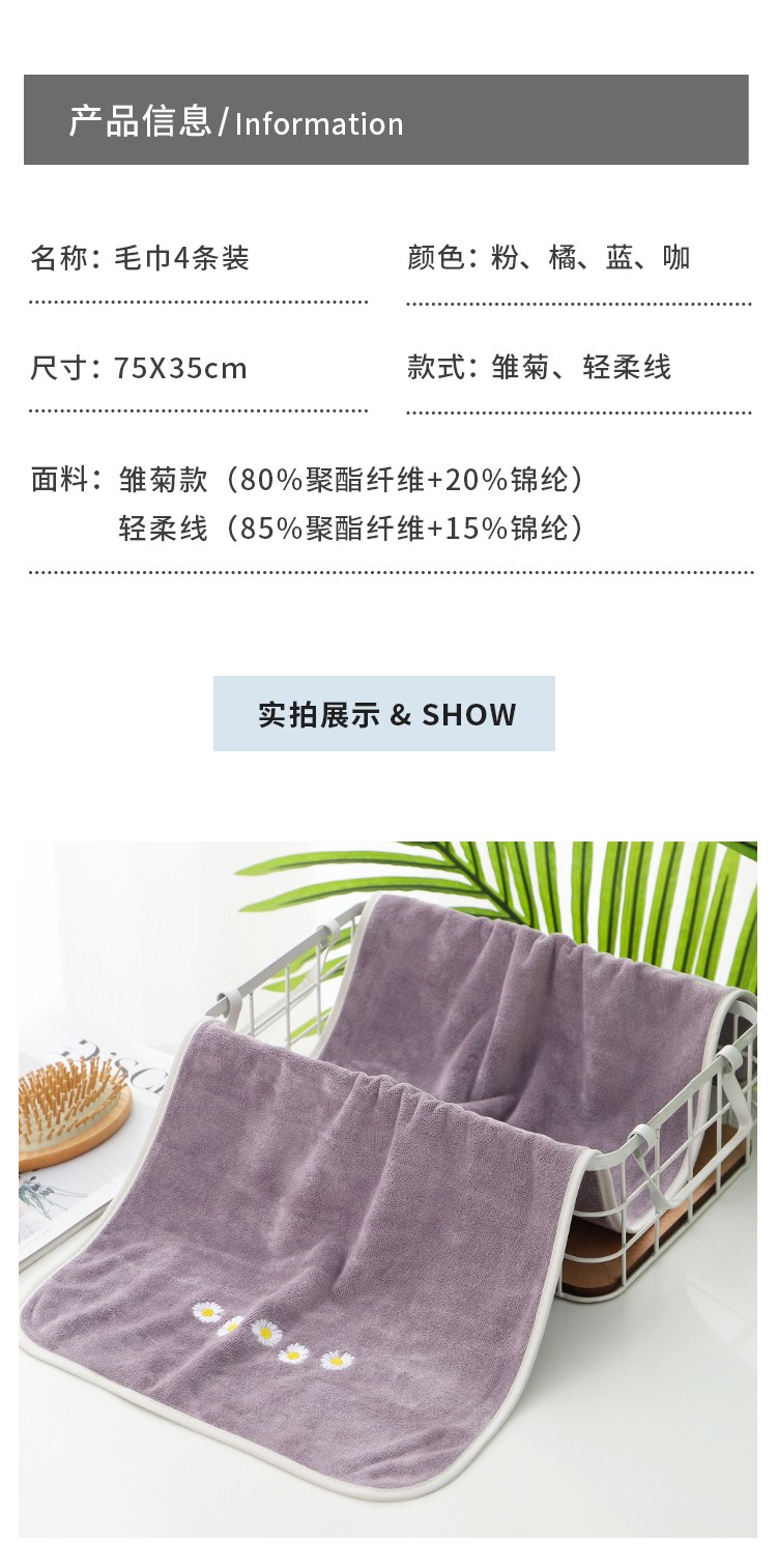 Mufan towel home textile 4 pack plain soft super absorbent towel adult household couple face cleaning towel 4 pack 75 * 35cm